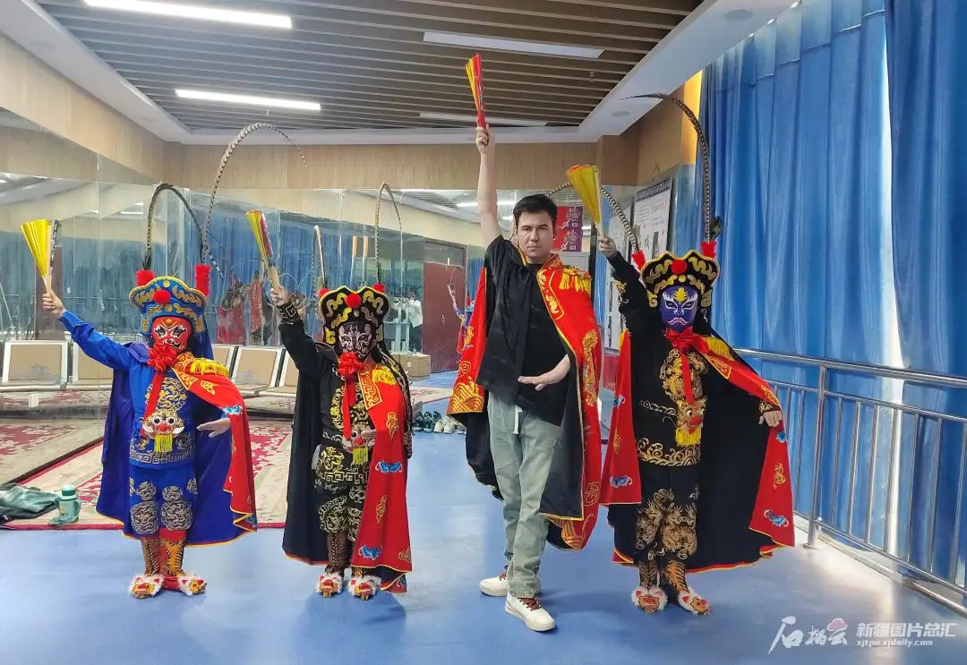 由于经常开展送文化进校园活动,阿力木江精彩的变脸表演艺术,也深深吸引了众多学生的目光。有三个小“粉丝”开始跟着他学习变脸技艺。“我现在会变四张脸,跟着师傅同台演出好几次了,同学们都非常羡慕我。”若羌县第一小学六年级二班学生艾力达尔江·艾尔西丁自豪地说。