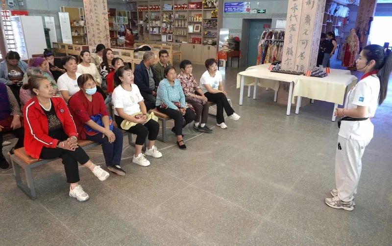 9月11日,在若羌县楼兰博物馆,该县红枣红心理论宣讲团宣讲员正在给群众宣讲《给李柏的回信》。记者邹焰忠摄