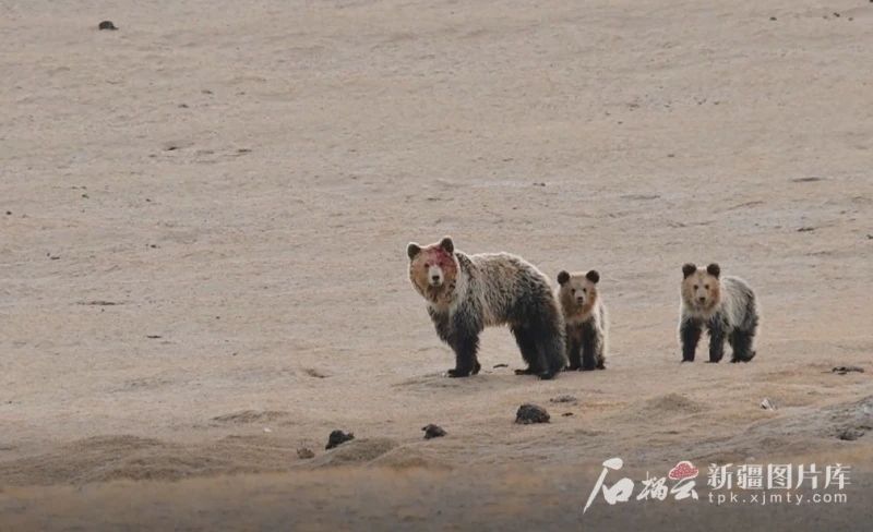 2021年7月,阿尔金山国家级自然保护区工作人员在秋尔卡卡检查站附近巡护时遇到的藏马熊一家。徐俊泉摄