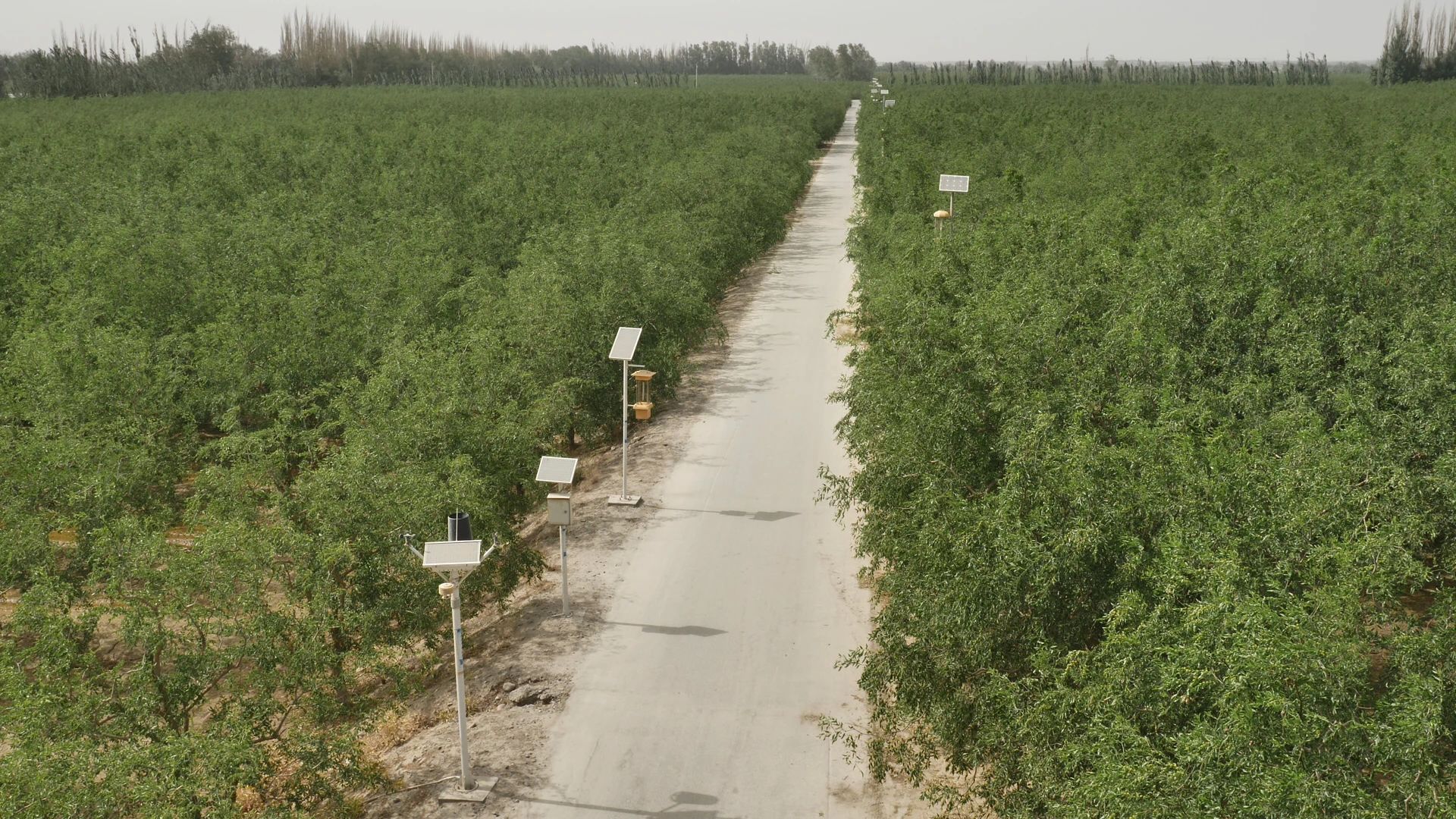 2023年,若羌县依托新疆林业科学院现代林业研究所等科研机构的智力和技术支持,打造了智慧枣园系统。在若羌万亩红枣示范基地,几台小巧的物联网设备竖立在枣林中,这是2023年7月上岗的“物联网监测设备”。若羌县红枣科学技术推广中心主任艾合太尔·苏来曼介绍,这些设备分别是物联网病虫害监测系统、土壤墒情监测站以及小气候监测站等,能够对枣园温度、湿度、土壤墒情、虫情等情况进行实时监测,帮助种植户第一时间做出果园管理的科学决策。