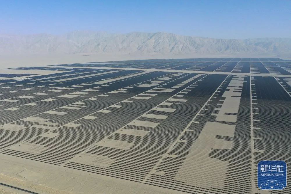 ↑这是中国绿发新疆中绿电若羌400万千瓦光伏项目(6月26日摄,无人机照片)。新华社记者丁磊摄