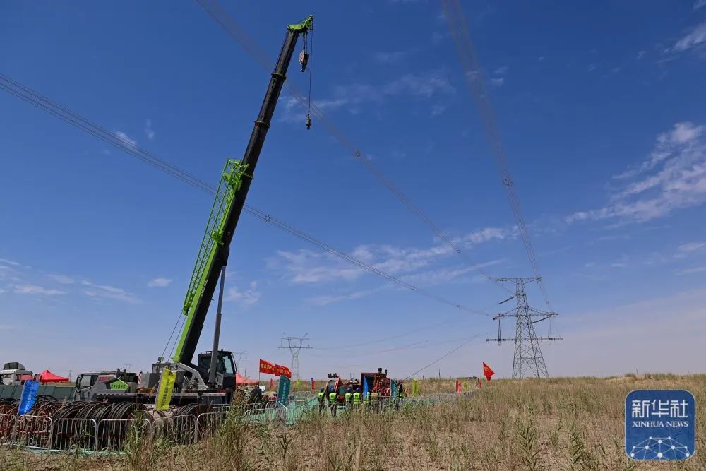 7月13日,在塔里木盆地南缘的新疆和田地区民丰县,随着牵引机将最后一段电线成功从183号铁塔拽至188号铁塔,标志着历时15年建设的环塔里木盆地750千伏输变电工程全线贯通,形成了一条围绕塔里木盆地的750千伏超高压输电环网。