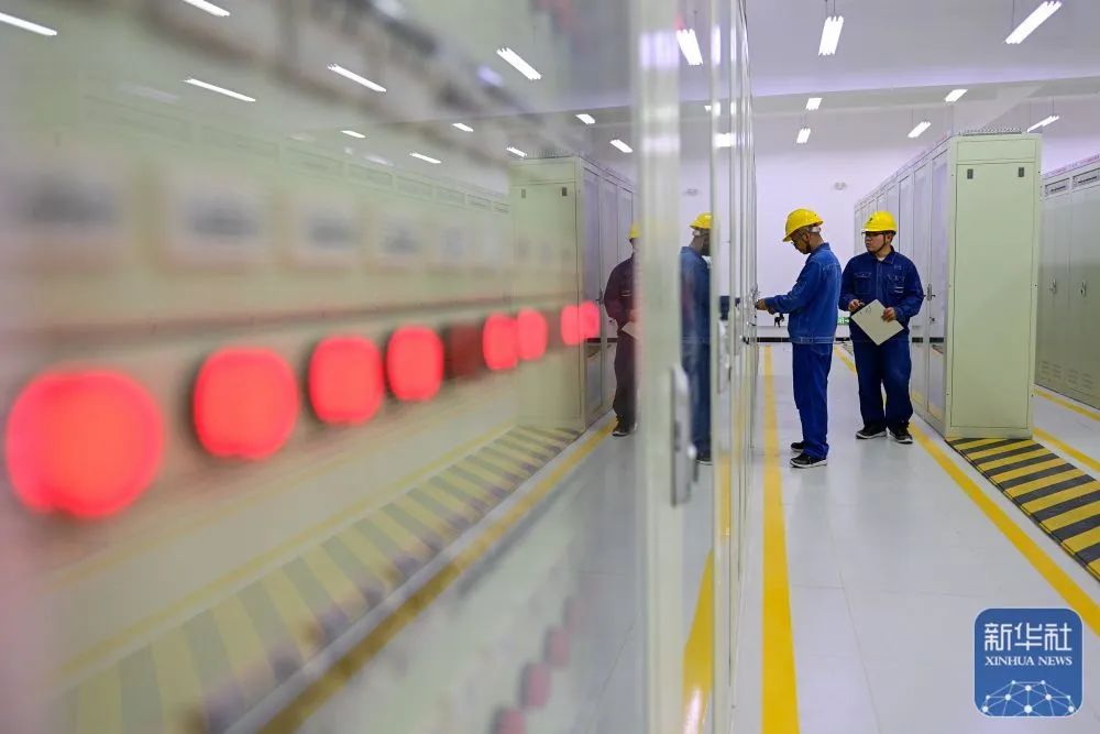 ↑在新疆环塔里木盆地750千伏输变电工程若羌750千伏变电站,运检人员在继电保护室巡检(6月27日摄)。新华社记者丁磊摄