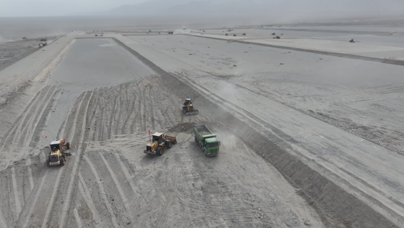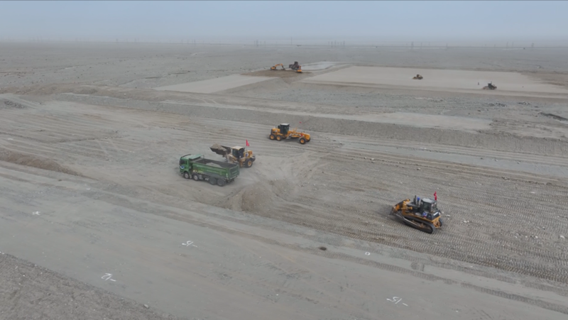 17时许,由自治区党委网信办主办,巴音郭楞蒙古自治州党委宣传部、党委网信办承办的“高质量发展看新疆”网络主题活动团队走进“疆电外送”第四通道电源项目工地,工人们正陆续上工,建设混凝土搅拌站、临时生活及办公楼等。约4平方公里的戈壁滩上,挖掘机、渣土车、起重机等各类机械作业繁忙,机声轰鸣。