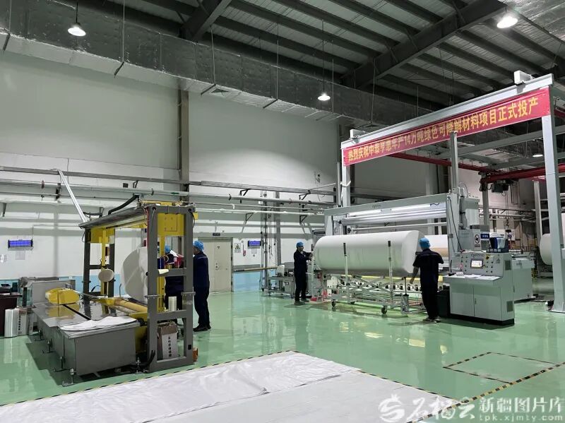 9月2日,新疆中泰亨惠医疗卫材股份有限公司生产车间,工人在搬运卷好的无纺布。陈兴超摄