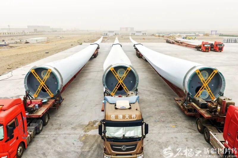 7月29日,东方风电(若羌)新能源有限公司年产200套风机叶片项目(一期)生产的叶片装车待发。苏波摄