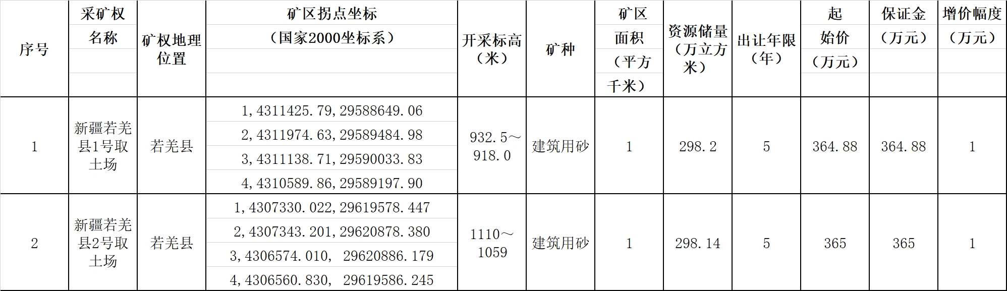 注:最终成交的采矿权范围拐点坐标以与若羌县自然资源局签订出让合同中确定的采矿权范围拐点。