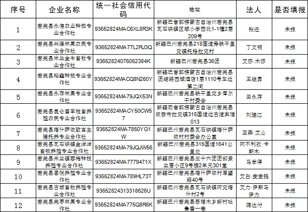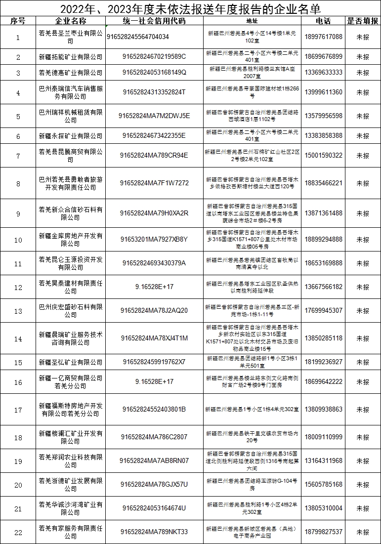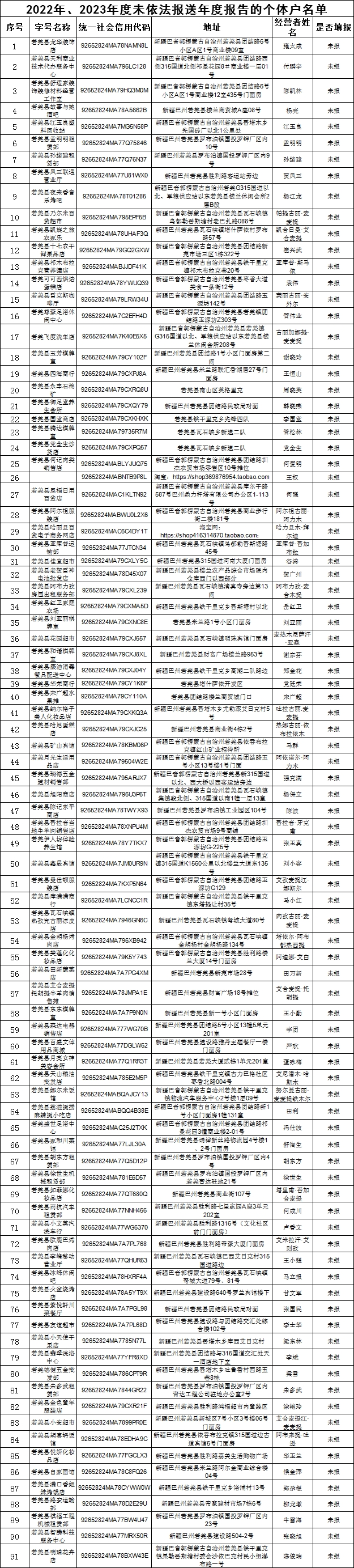 附件:若羌县2022年、2023年度连续两年未年报的经营主体名单(个体工商户、农民专业合作社、企业)
