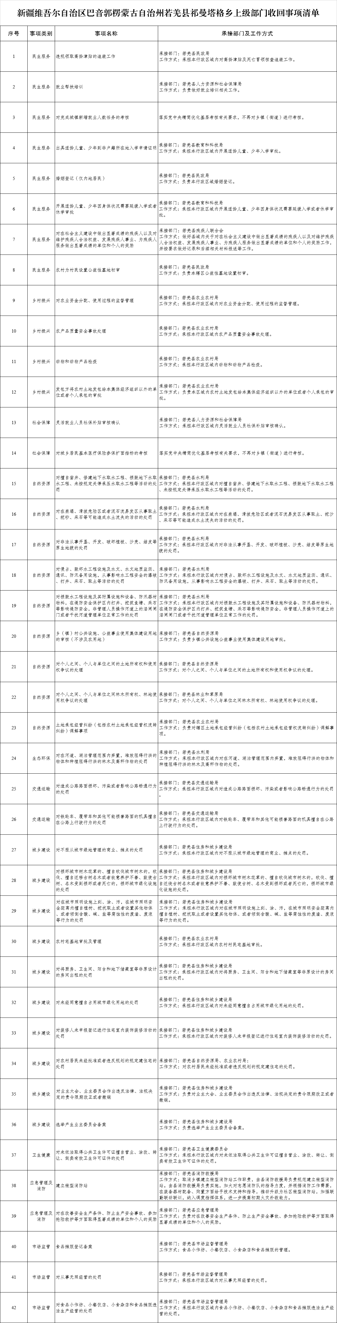若羌县祁曼塔格乡履职事项清单