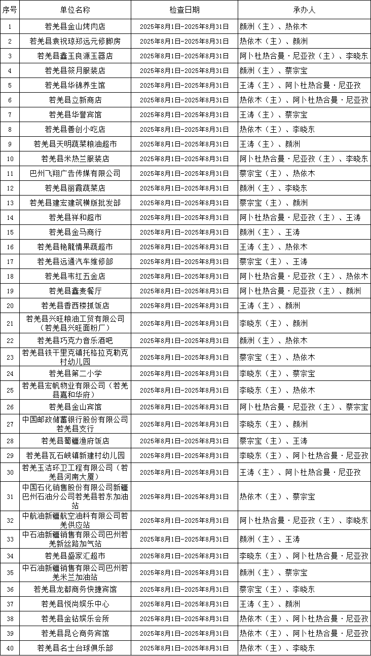若羌县消防救援大队2025年8月消防监督抽查计划