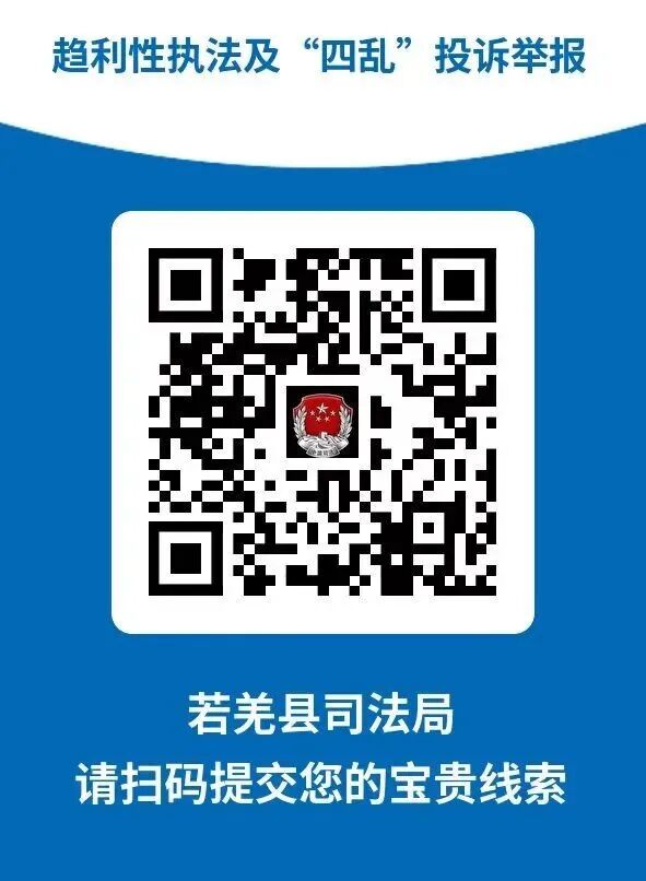 (五)扫码举报:可扫“若羌县违规异地执法、趋利性执法以及‘四乱’投诉举报二维码”进行投诉举报。