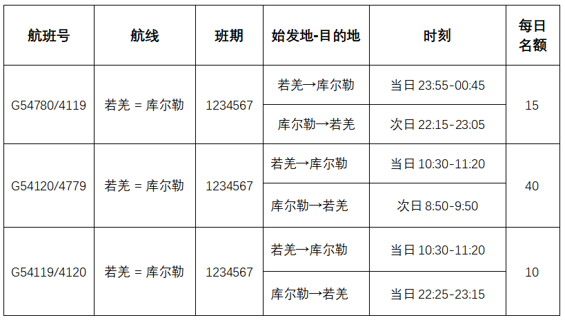 公益航班配置