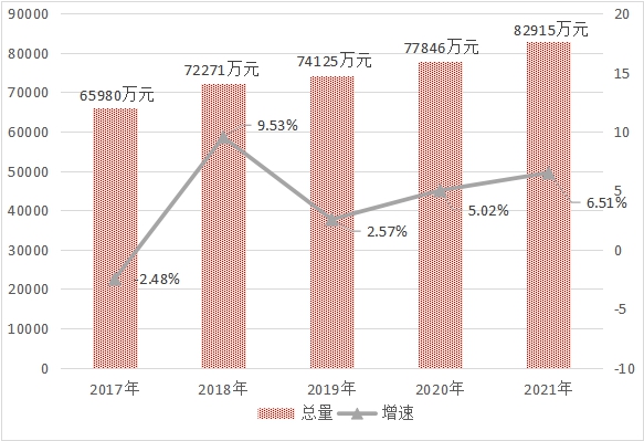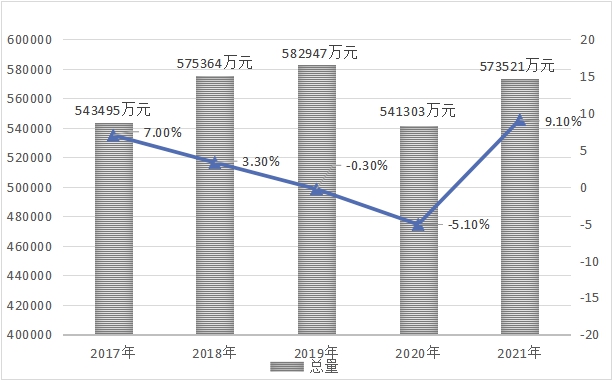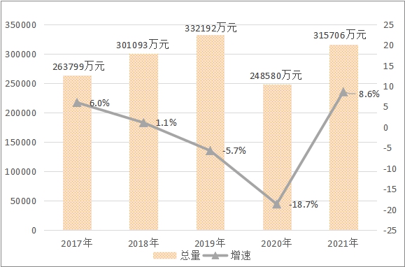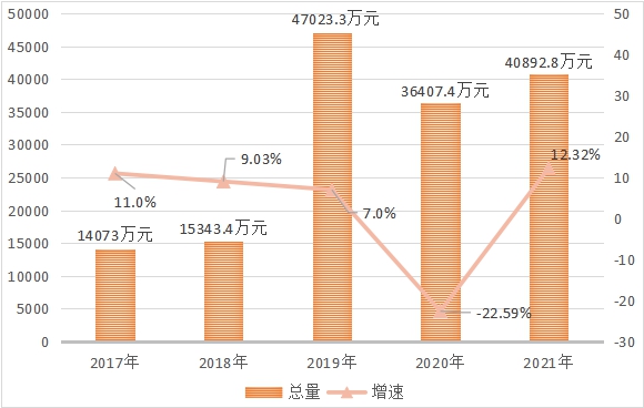 图七:2017年-2021年固定资产投资总额及增长速度