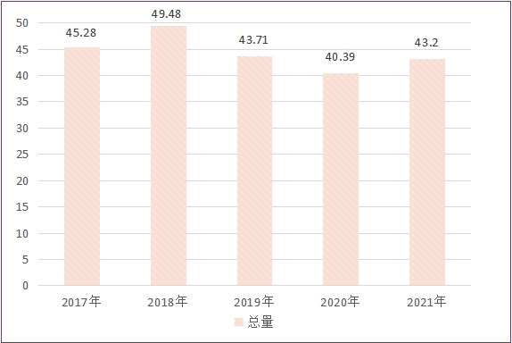 图十三:2017年-2021年能源消费总量(万吨/标准煤)