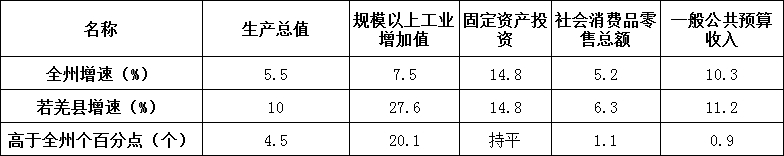 表:2025若羌县五项指标增速与全州对比情况