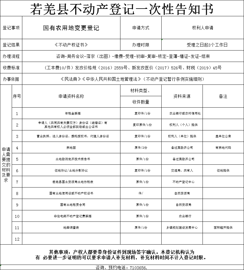 若羌县不动产登记一次性告知书(国有农用地变更登记)