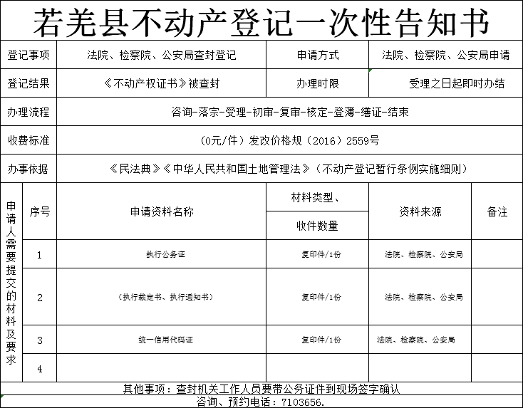 若羌县不动产登记一次性告知书(法院、检察院、公安局查封登记)
