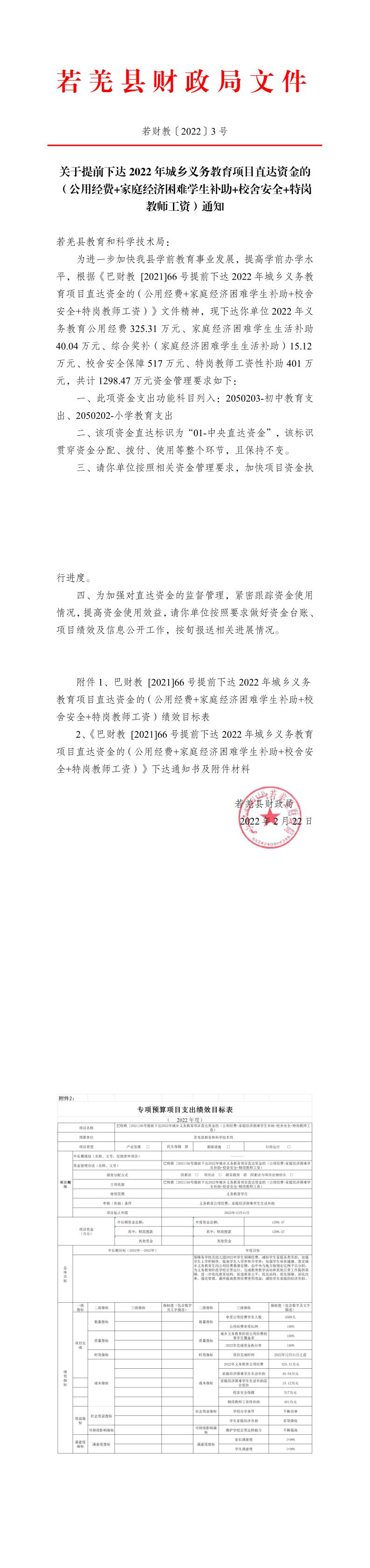 提前下达2022年学生资助补助直达资金(公用经费+家庭经济困难学生补助+校舍安全+特岗教师工资)