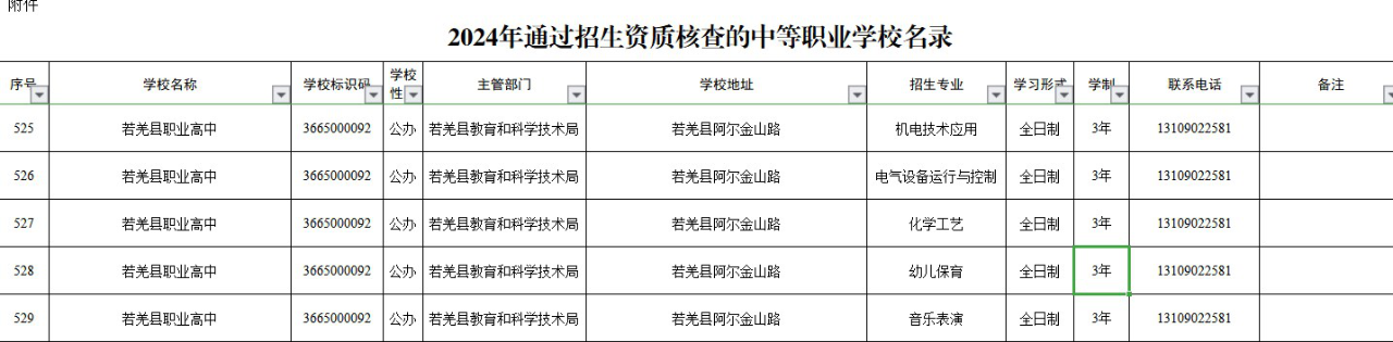名录包括巴州14所学校,若羌县职业高中5个专业名列其中,凡未在以下公布名单之列的学校和专业,2024年一律不得安排招生。如擅自招生,属违规招生行为,所招学生不予注册学籍。