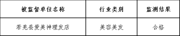 美容美发场所共抽检1家,抽检项目为:1.设置卫生管理人员;2.建立卫生管理档案情况;3.从业人员健康体检情况;4.设置禁止吸烟标识情况;5.公示卫生许可证、卫生信誉度等级;6.按照规定落实公共用品用具消毒制度情况;7.剪刀、梳子等工具的大肠菌群;8.毛巾、围布等公共用品的大肠菌群。
