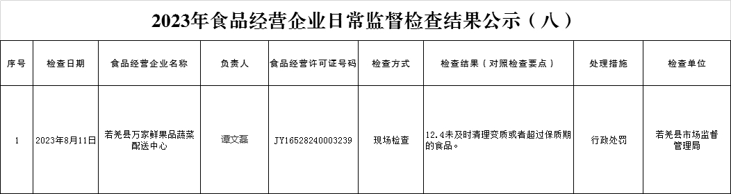 2023年食品经营企业日常监督检查结果公示(八)