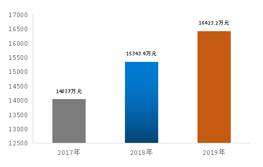 图五:2017年-2019年若羌县社会消费品零售总额完成情况