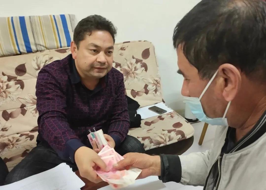 “非常感谢党和政府的好政策,给我们操心,给我们带路,每年还给我们分红,现在我们的日子过得越来越有盼头啦!”铁木里克乡贫困户吐尔迪·萨吾尓领到分红后开心的说道。