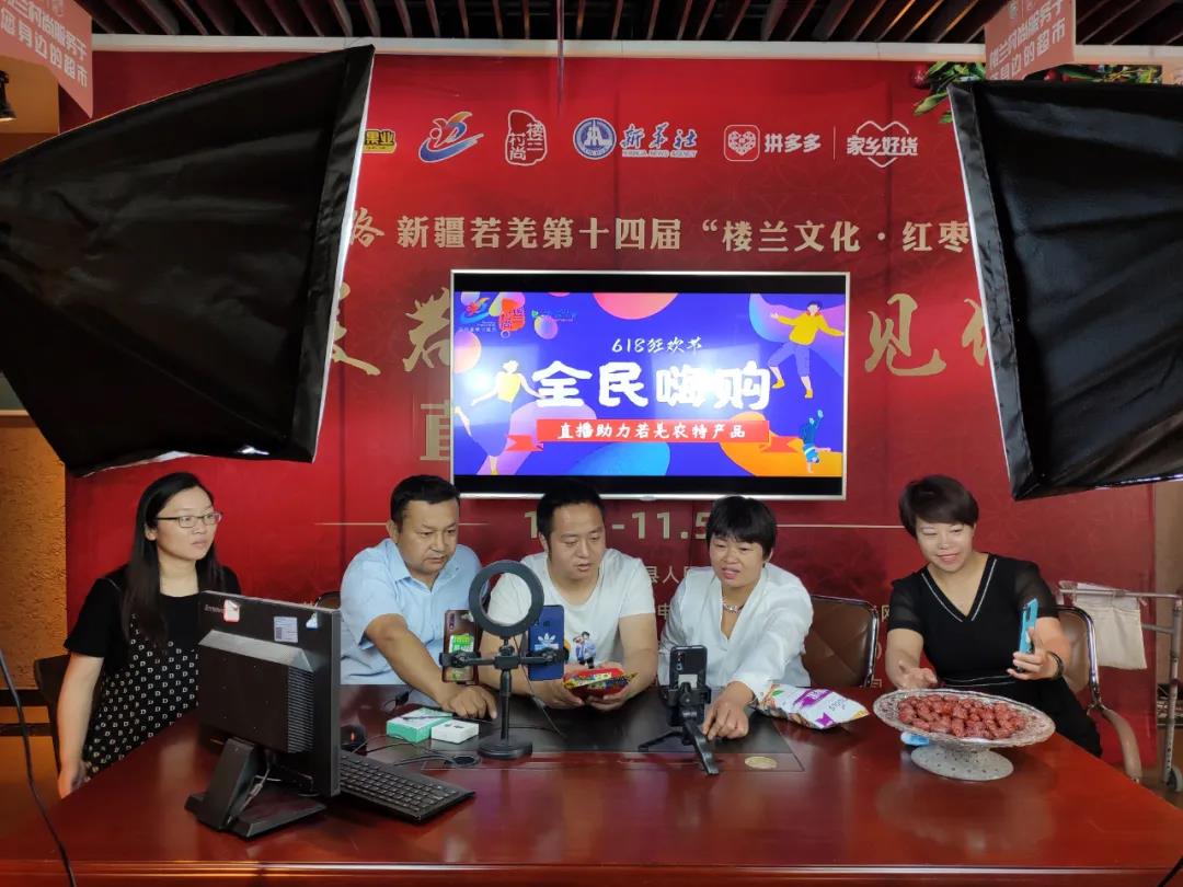 本地网红王百文、裴雪、刘学敏、居曼·依明、玉素甫江通过前几天在“网红直播实操培训营”学到的知识和技能,在抖音直播平台与网友频繁互动,向广大网友介绍若羌县农特产品,为若羌县优质的农特产品代言。