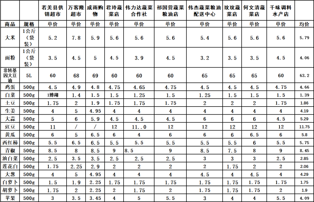 结合若羌县实际情况,县市场监督管理局采集县域内10家供应商涉及“米袋子”、“菜篮子”18种重点商品价格,现将3月3日相关重点民生商品价格公示如下: