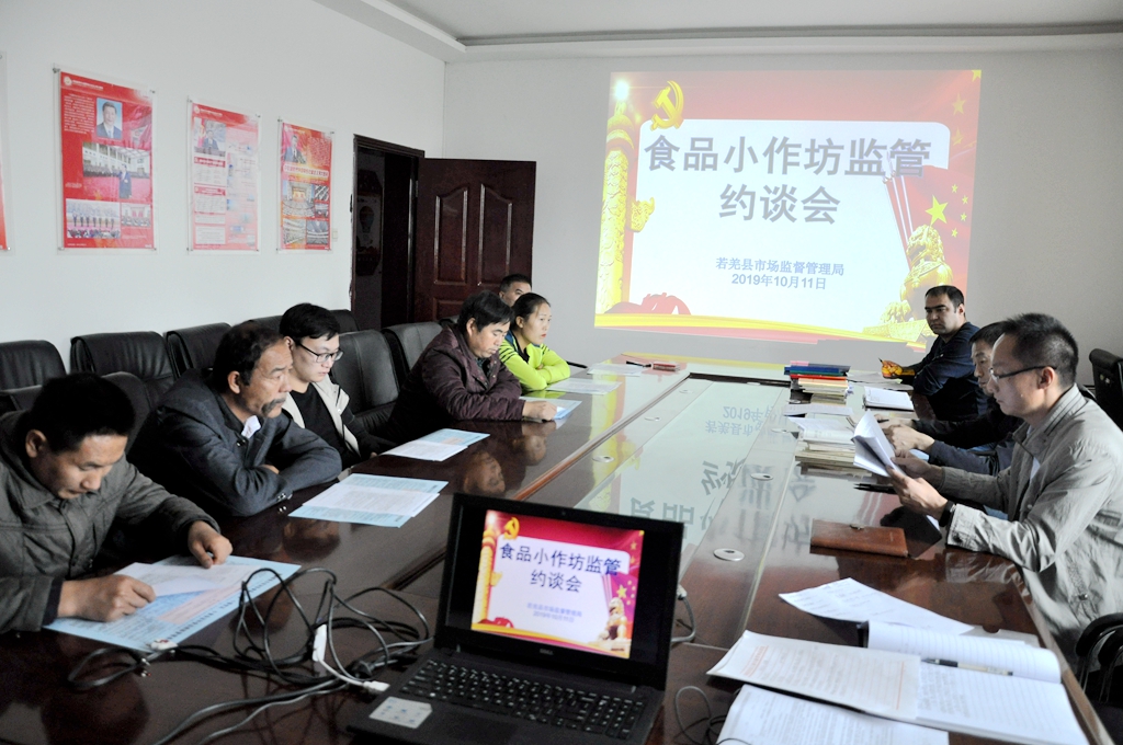 为深入推进民生领域食品安全专项整治,近日,若羌县市场监督管理局召集县域内7家食品小作坊负责人开展警示教育、约谈提醒,通过以会代训的方式,督促进一步落实主体责任,从源头把控食品质量安全。