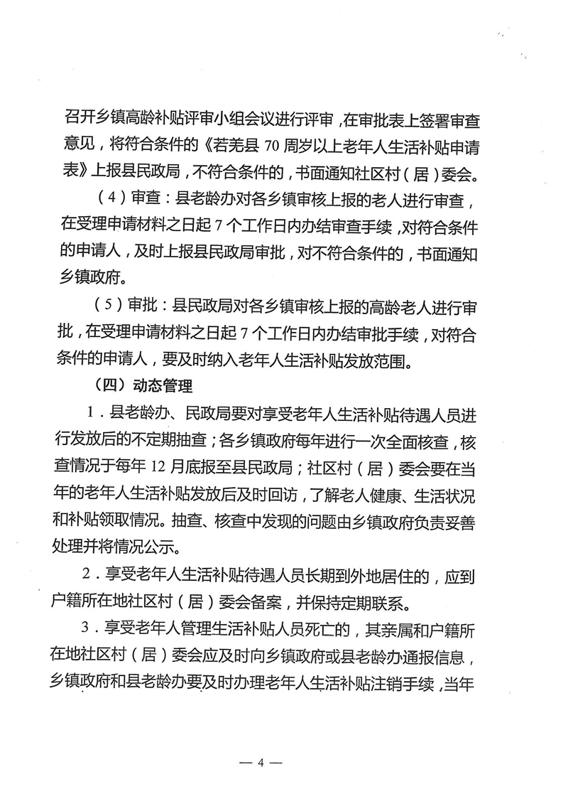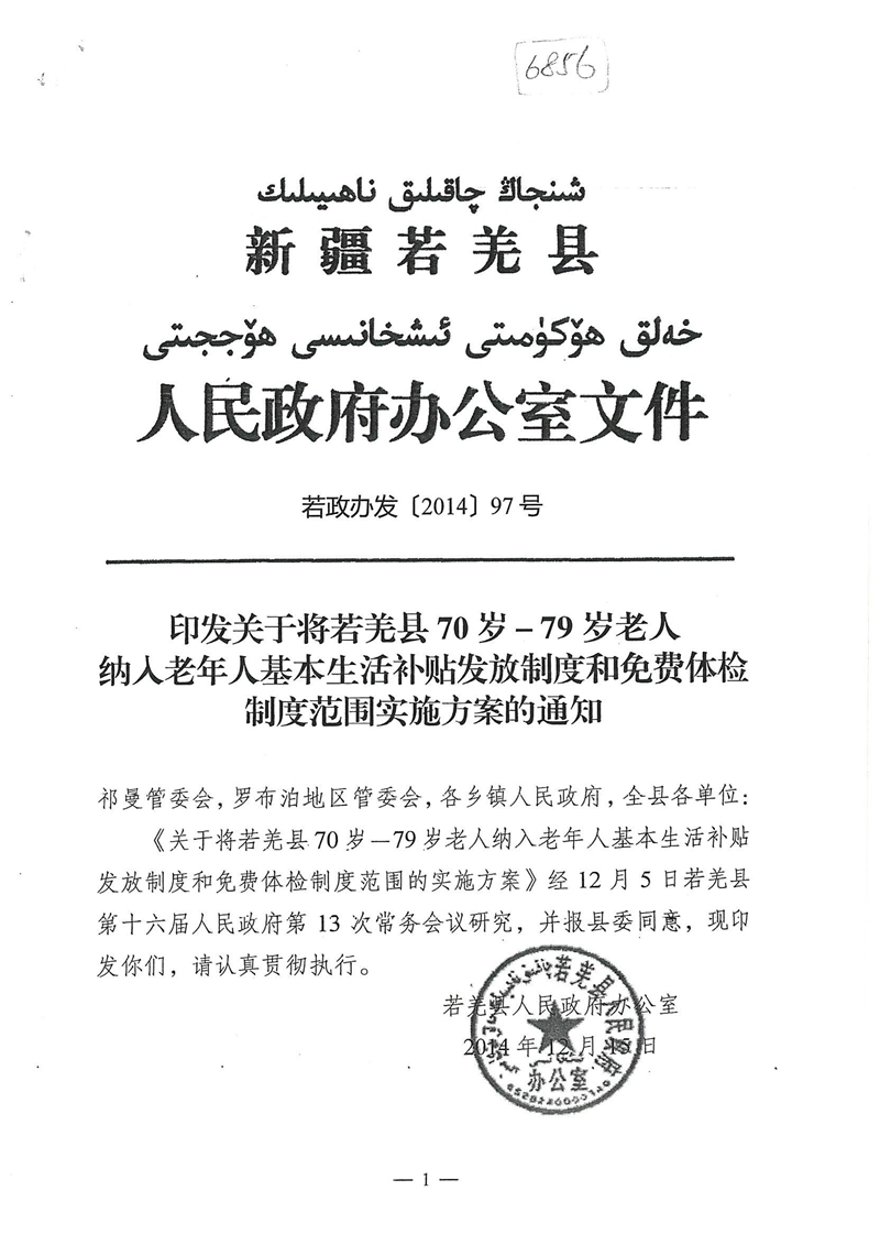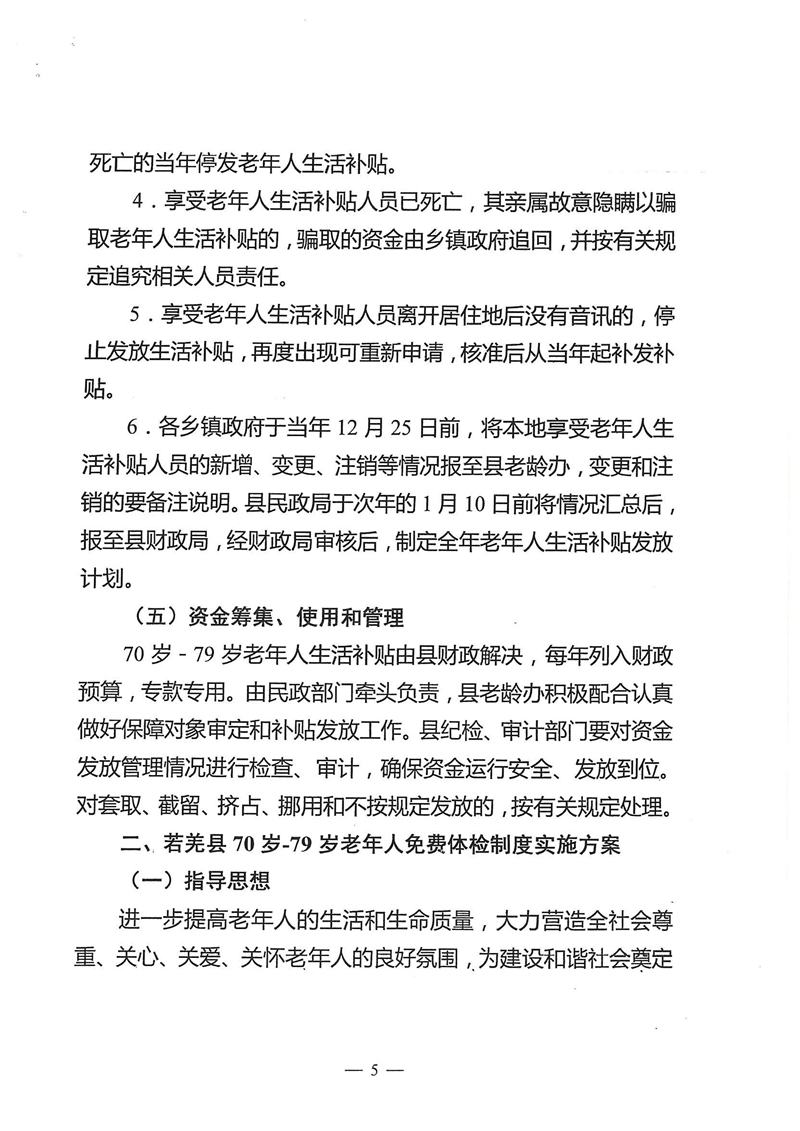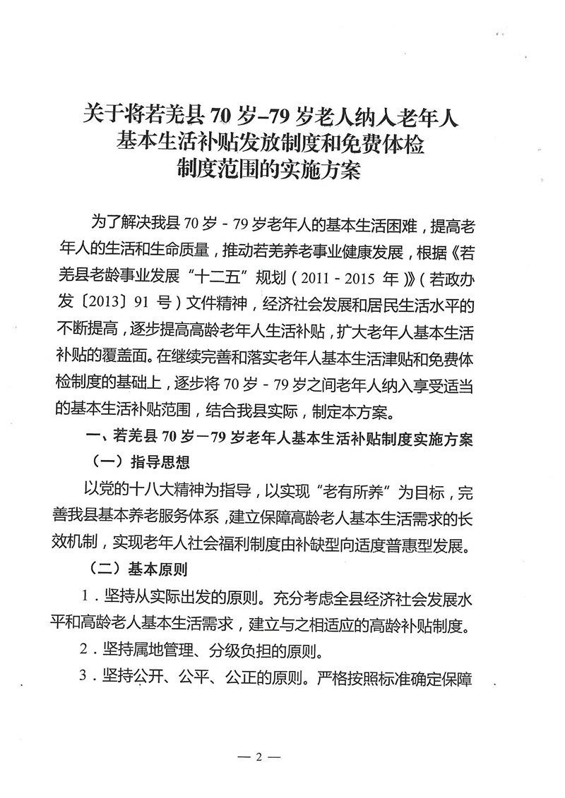 印发关于将若羌县70岁-79岁老人纳入老年人基本生活补贴发放制度和免费体检制度范围实施方案的通知