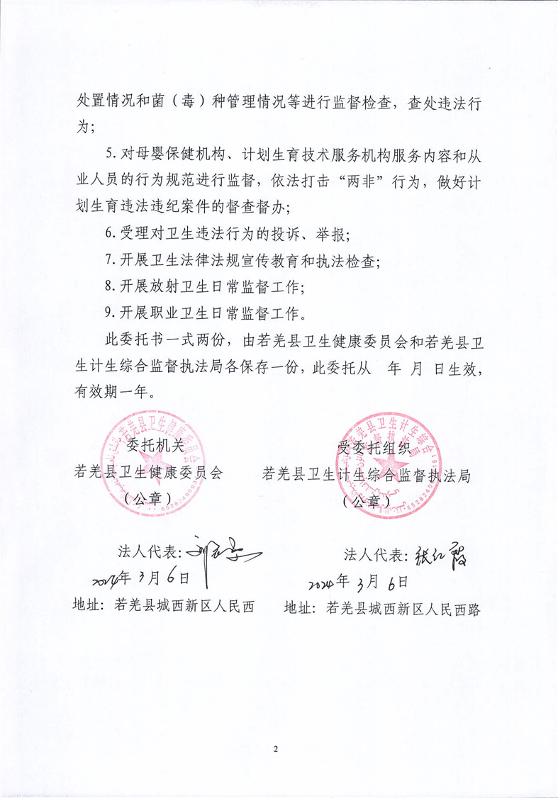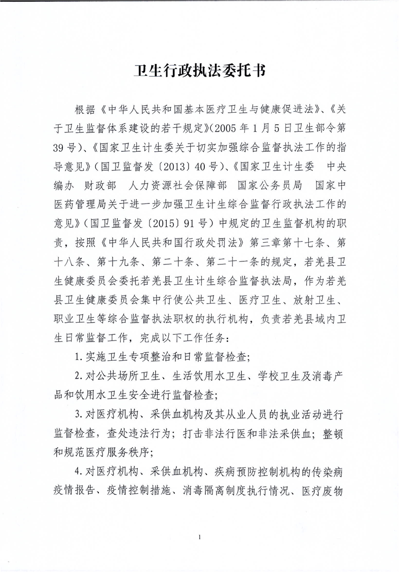 若羌县卫生行政执法委托书
