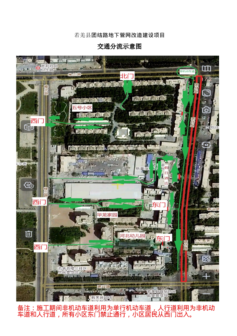 5、若羌县河北双语幼儿园行经至楼兰路由西门出入。