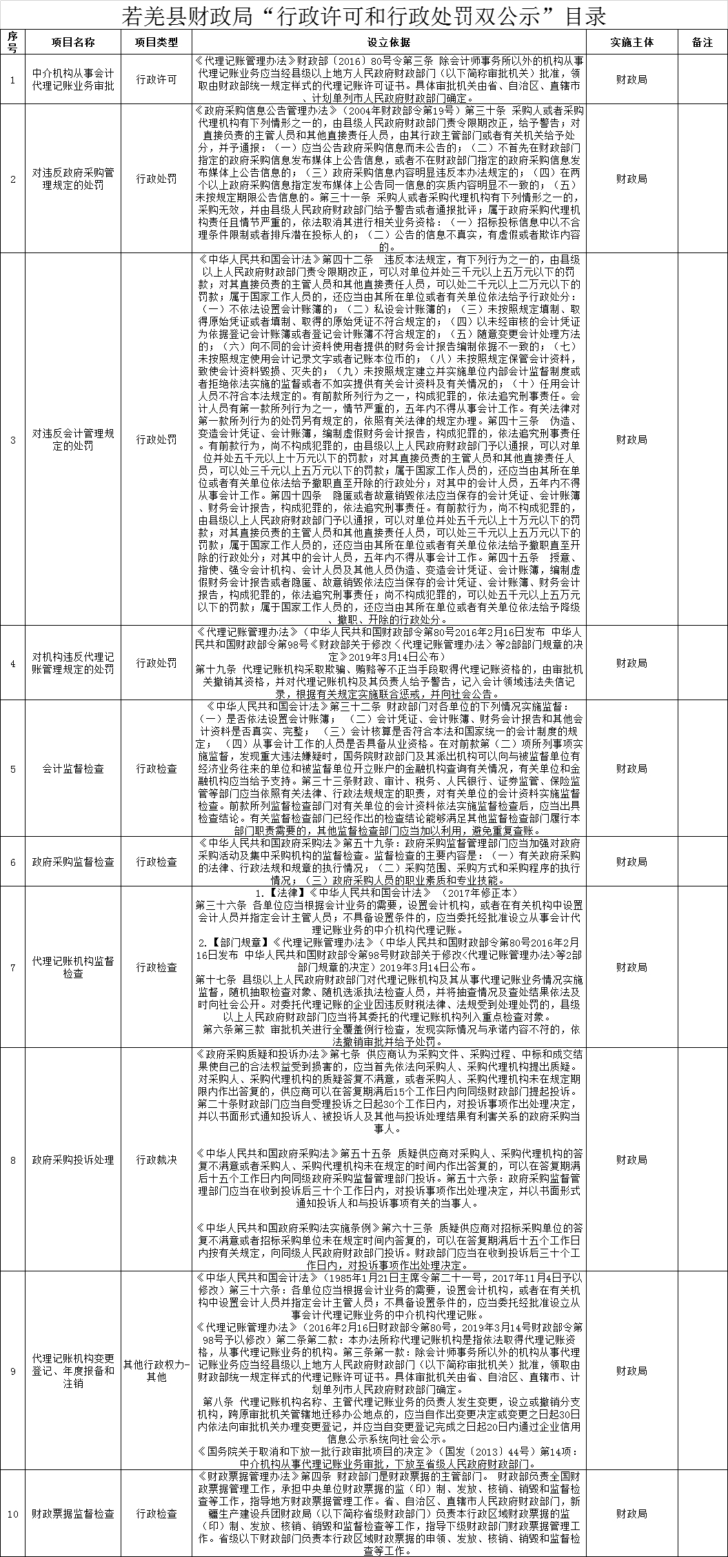 若羌县财政局“行政许可和行政处罚双公示”目录