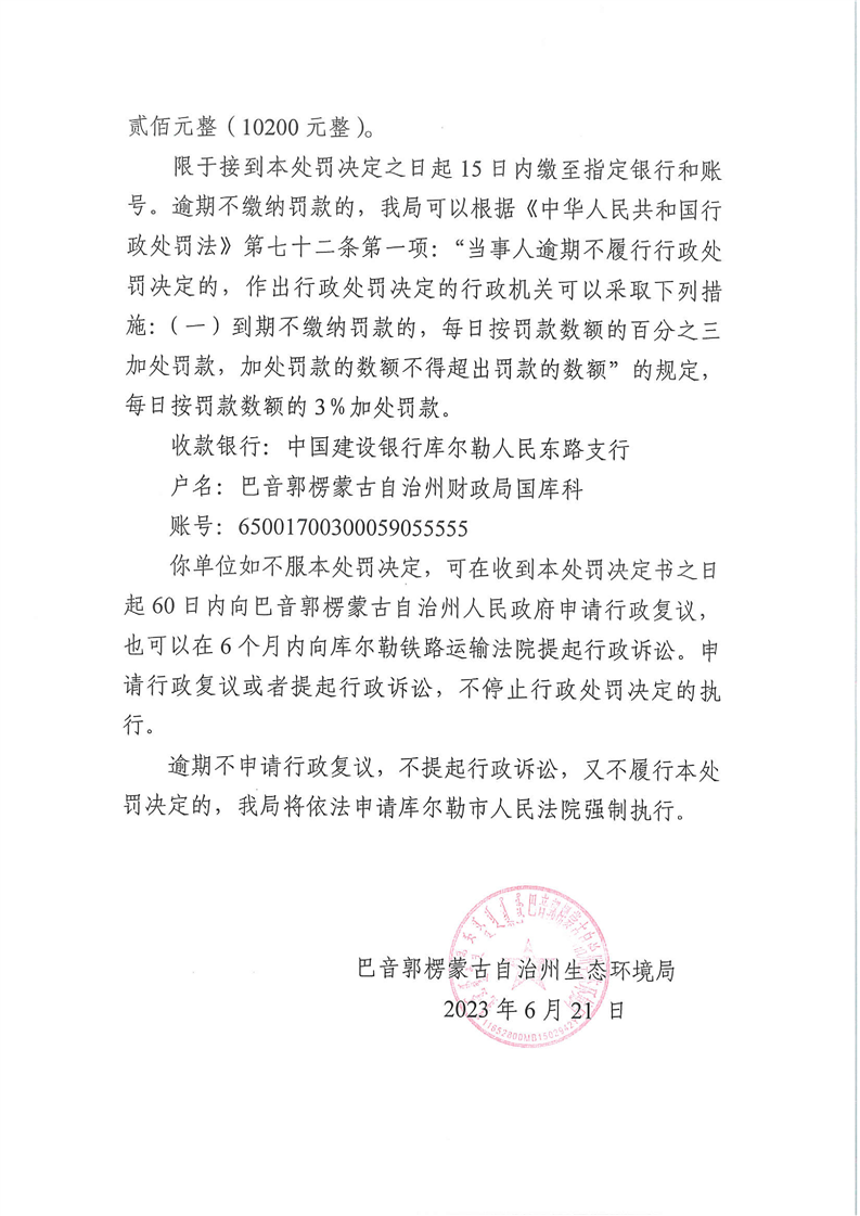 行政处罚决定书(巴环罚字〔2023〕9-2号)