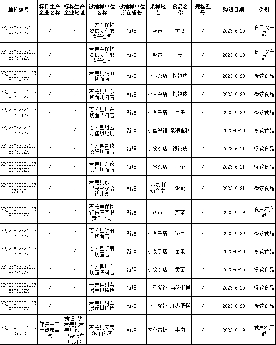 根据《中华人民共和国食品安全法》和《食品安全抽样检验管理办法》的规定,近期,若羌县市场监督管理局对全县范围内经营的16批次食品进行了监督抽检。抽检结果16批次合格,0批次不合格。产品信息详见附件。