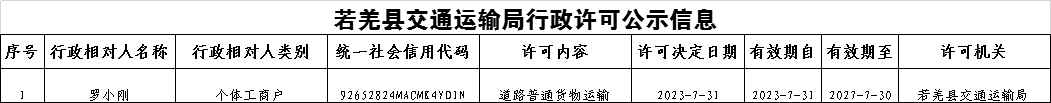 若羌县交通运输局行政许可公示信息(2023-7-31)