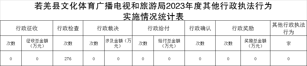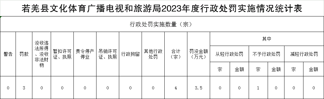 若羌县文化体育广播电视和旅游局2023年度行政处罚实施情况