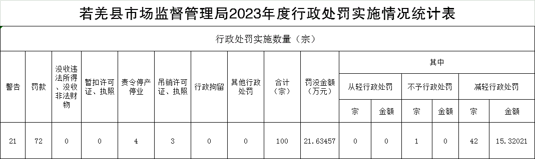 若羌县市场监督管理局2023年度行政处罚、行政许可等实施情况公示