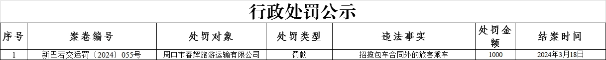 若羌县交通运输局行政处罚公示(2024.03.18)