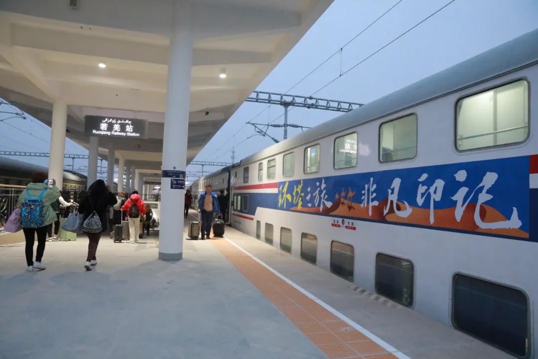 4月3日,满载523名游客首趟环塔克拉玛干旅游列车抵达若羌,开始他们南疆丝绸之路探秘之旅。