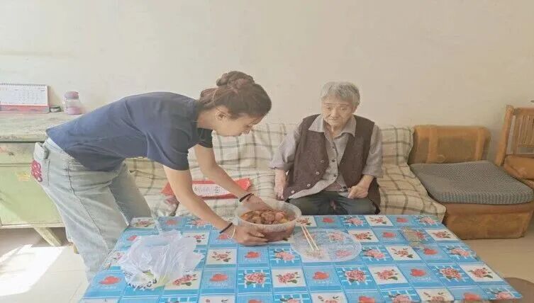 生日当天,由村干部组成的志愿小分队上门送上热乎餐食,并表达生日祝福,细致询问老人身体状况和生活需求,叮嘱有困难及时联系。